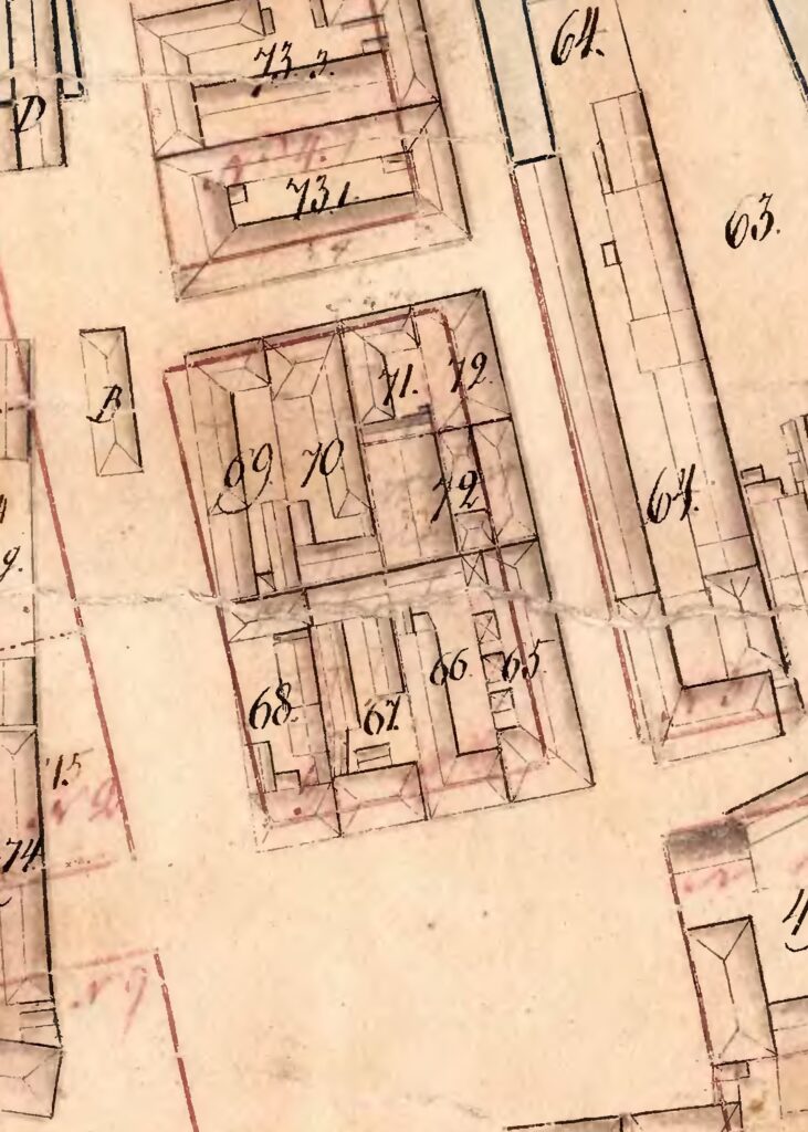 Kvarteret Kommersen i Masthugget på 1816 års karta